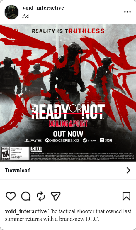 The result was a dynamic campaign that not only spotlighted the arrival of Ready or Not on console, but also energized fresh audiences to step into its world of strategic action—contributing to the game’s massive commercial and critical success.